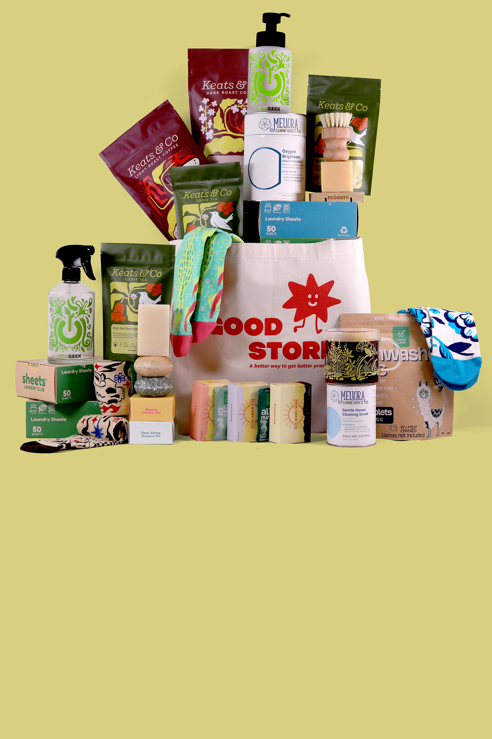 Save on your favorite products when you bundle them together! Get a box of goodies delivered right to your door, full of high-quality products that delight. Start your day with a cup of your favorite Keats & Co coffee or tea, lather up in the shower with Sun Basin Soap, or clean your house with EcoGeek cleaners.