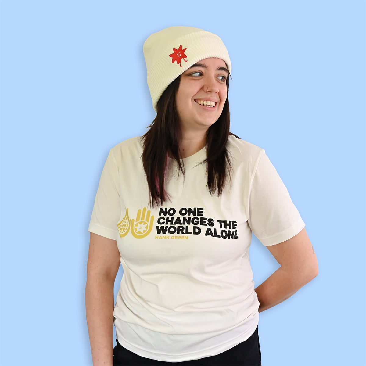 Hank Green reminds us that “No One Changes the World Alone”—and now, you can wear that sentiment wherever you go with our new Good Store merch. It’s a wearable reminder that collaboration and kindness matter. Bold, thoughtful, and designed to spark conversation, this shirt is meant to share a little inspiration with the world. Check it out.