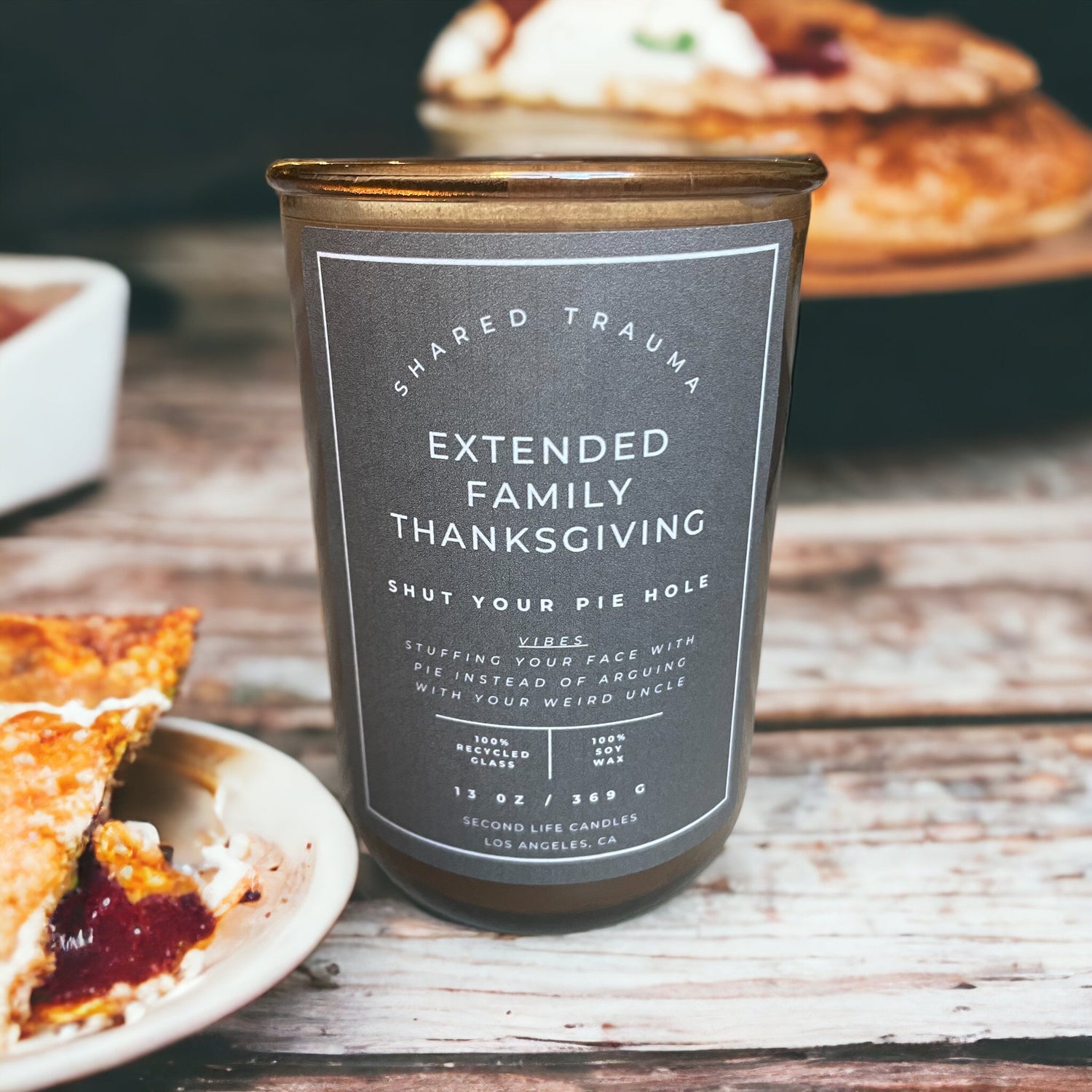 Shared Trauma: Extended Family Thanksgiving Candle - 13 oz, Crackling Wood Wick